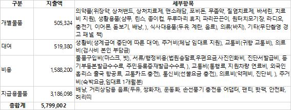 구체 지출내역은 아래 표를 참고해 주세요.