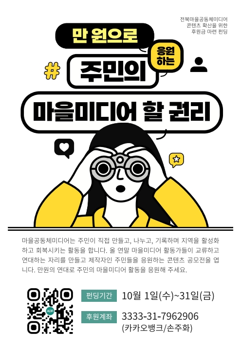 (2025 펀딩 안내) “전북마을미디어 공모전, 만 원으로 함께 이어가요!”